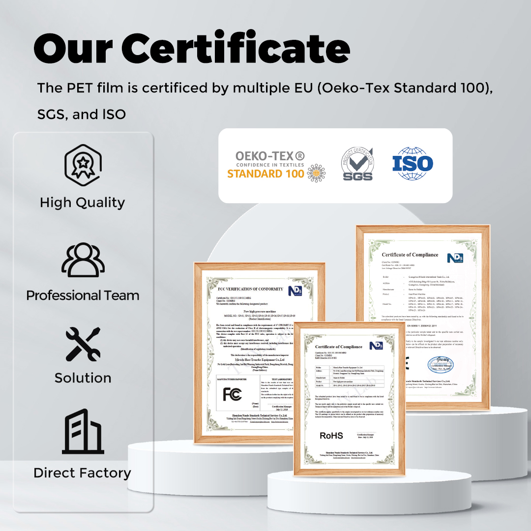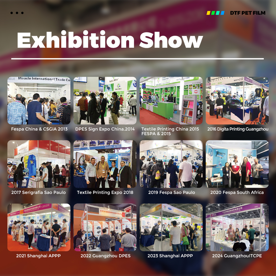 Guangzhou Miracle Print Technology Inc with over 10 year experience in printing business, specialized in producing heat transfer materials and PET film. We are a production-oriented heat transfer materials factory integrated with R&D, manufacture, sales and service into one. Our PET film is manufactured by imported high-quality PET base film and combined with unique coating technology, which adapt to the majority of ink on the market. We are running a dust-free workshop and have introduced 3 advanced high-speed coating production lines, computer micro-controlled coating machines, a complete set of coating equipment such as slitting, slicing inspection, to strictly control production standards,monthly production capacity up to 50,000 rolls. The PET film is qualified with multiple EU (Oeko-Tex Standard 100), SGS, and lSO. Our company has gathered a core team with many years of sales and production experience in printing industry. lt can provide stable and high-guality products to meet the needs of users and agents. At the same time, it proposes personalized supporting solutions for customers to enhance their market competitiveness and truly realize the perfect combination of products and concepts.